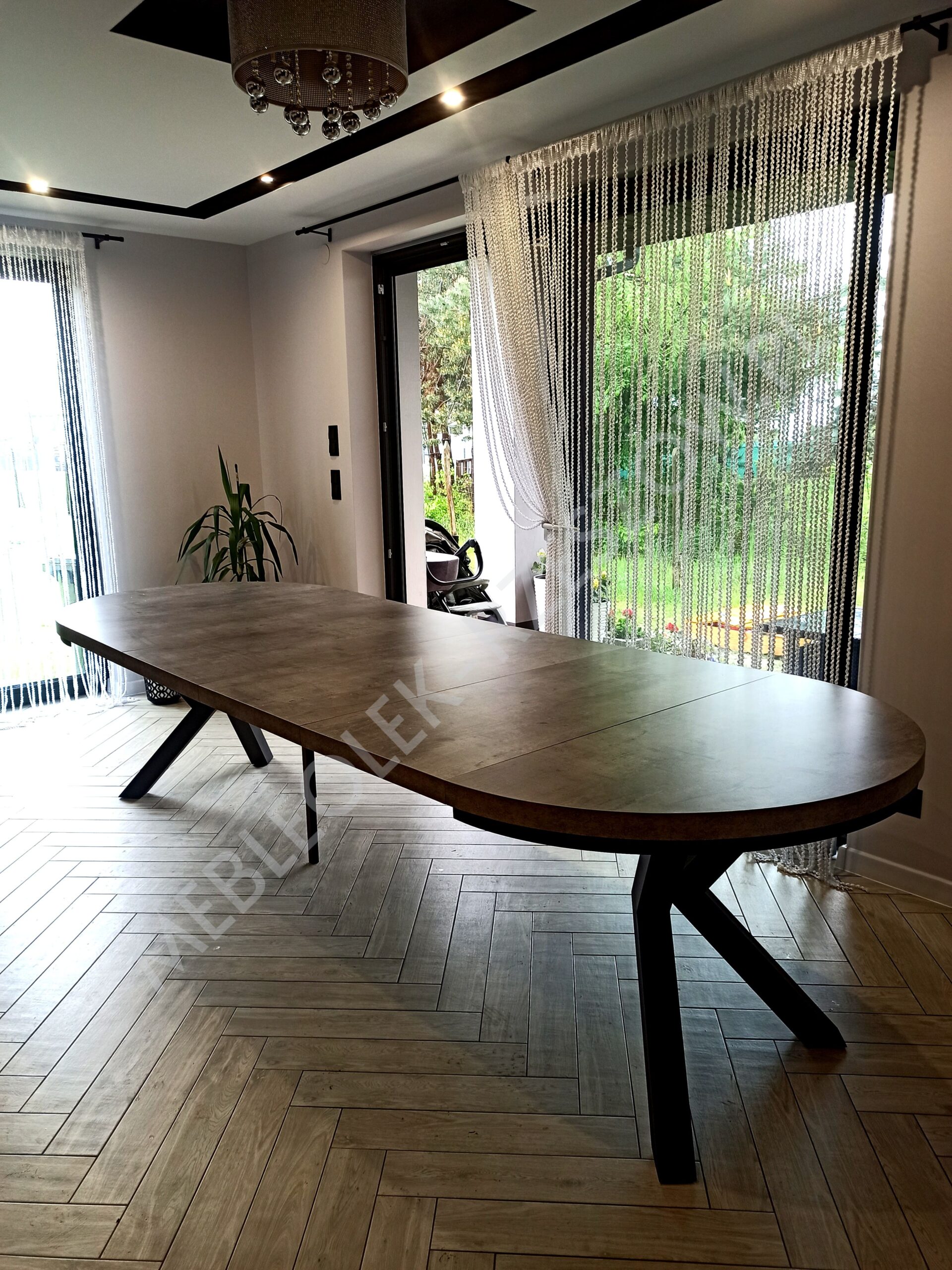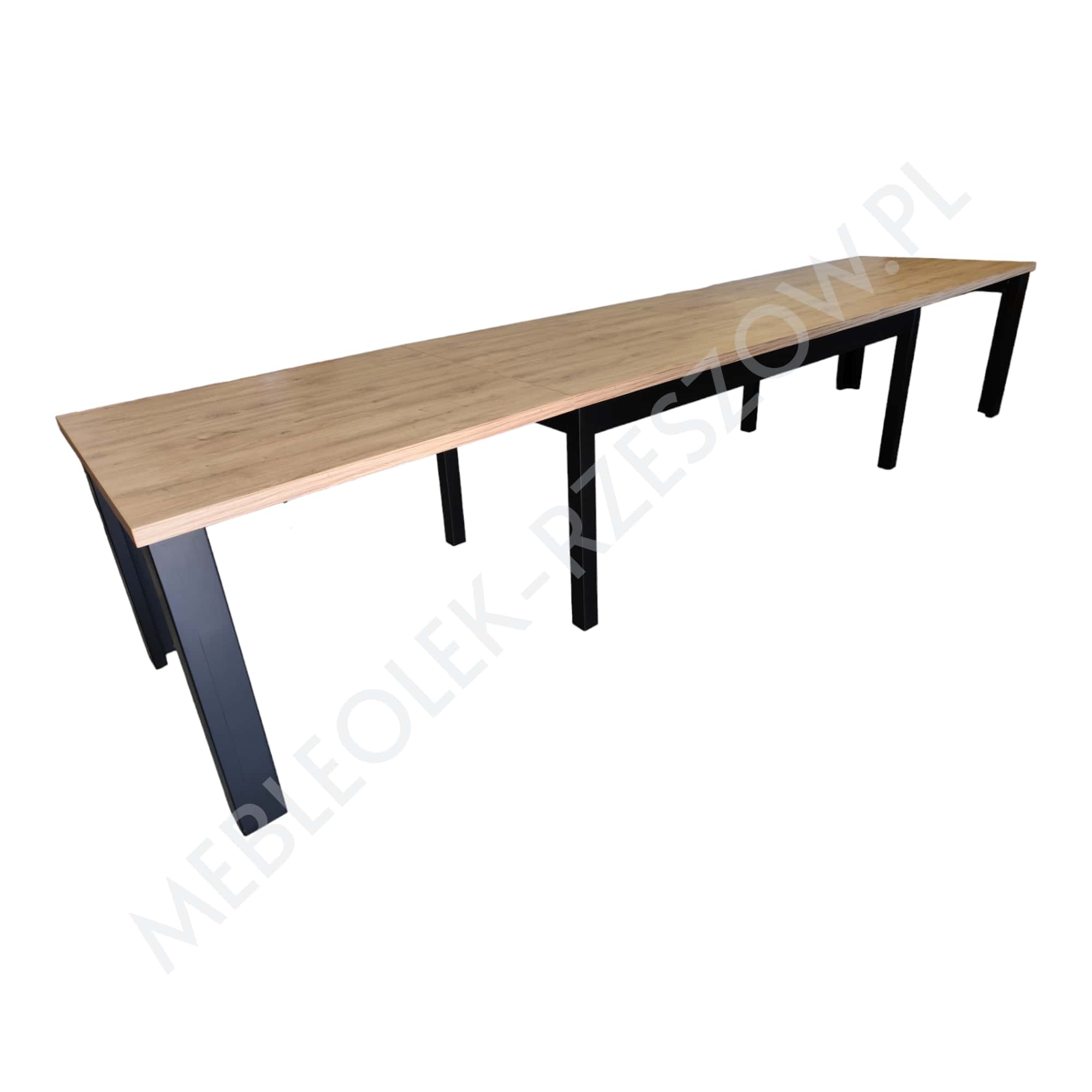 Stół 8-nóg to kompaktowy stół, który na co dzień nie będzie zajmował całej przestrzeni w pomieszczeniu a podczas przyjęcia pomieści dużą liczbę gości. Wszystko dzięki możliwości rozłożenia go z wymiaru 200x100cm do 400x100cm (4 wkłady po 50cm) lub 160x90cm do 360x90cm (dostępne również inne wymiary).