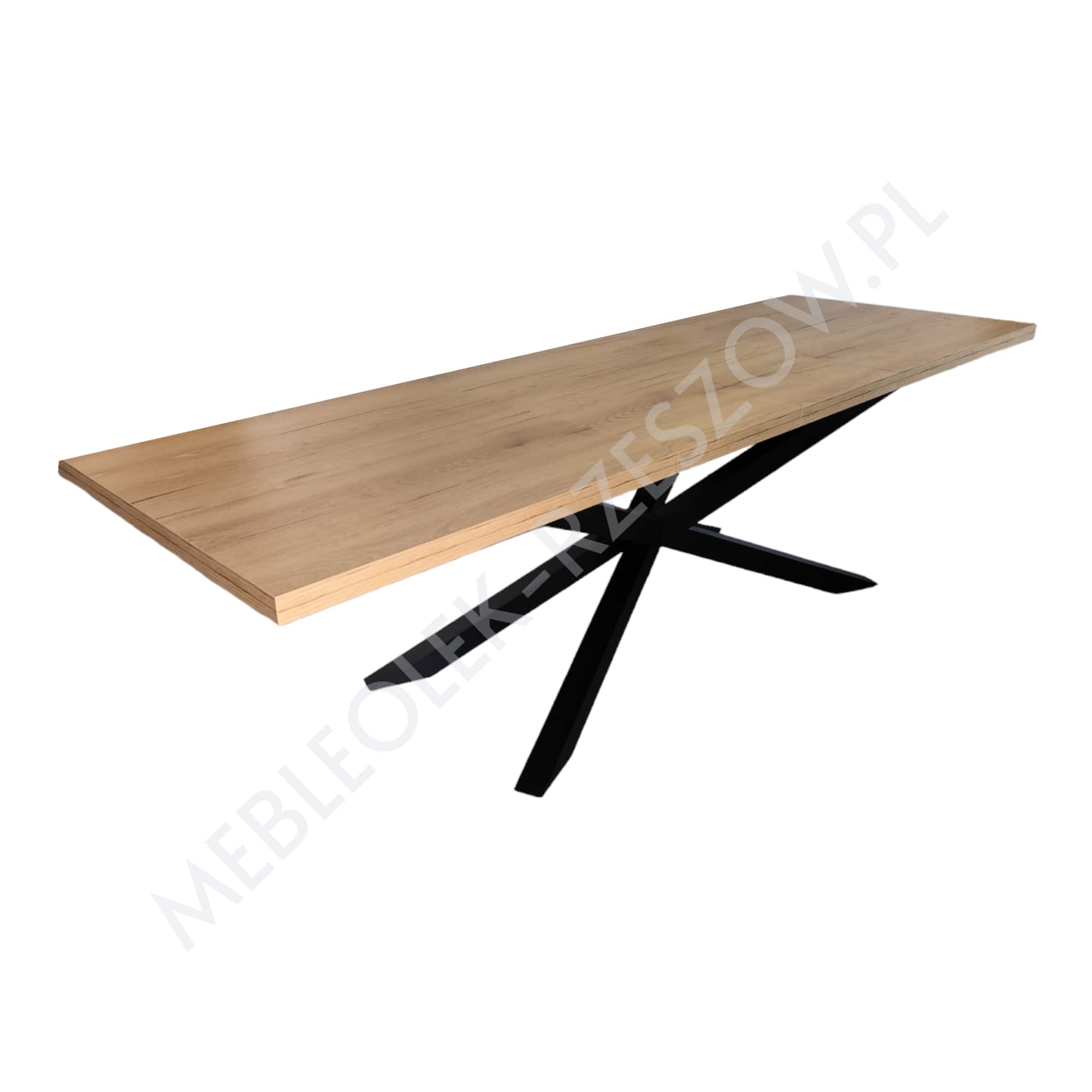 - Stół Pająk to designerski stół który wnosi surową elegancję stylu loft/industrial oraz ciepło naturalnego drewna. Wykonany jest na malowanej proszkowo solidnej metalowej podstawie łączącej nogi w kształcie nóg pająka. Blat stołu wykonany jest z łatwej w użytkowaniu płyty laminowanej wykończonej obrzeżem PCV/ABS na grubość 5cm.
