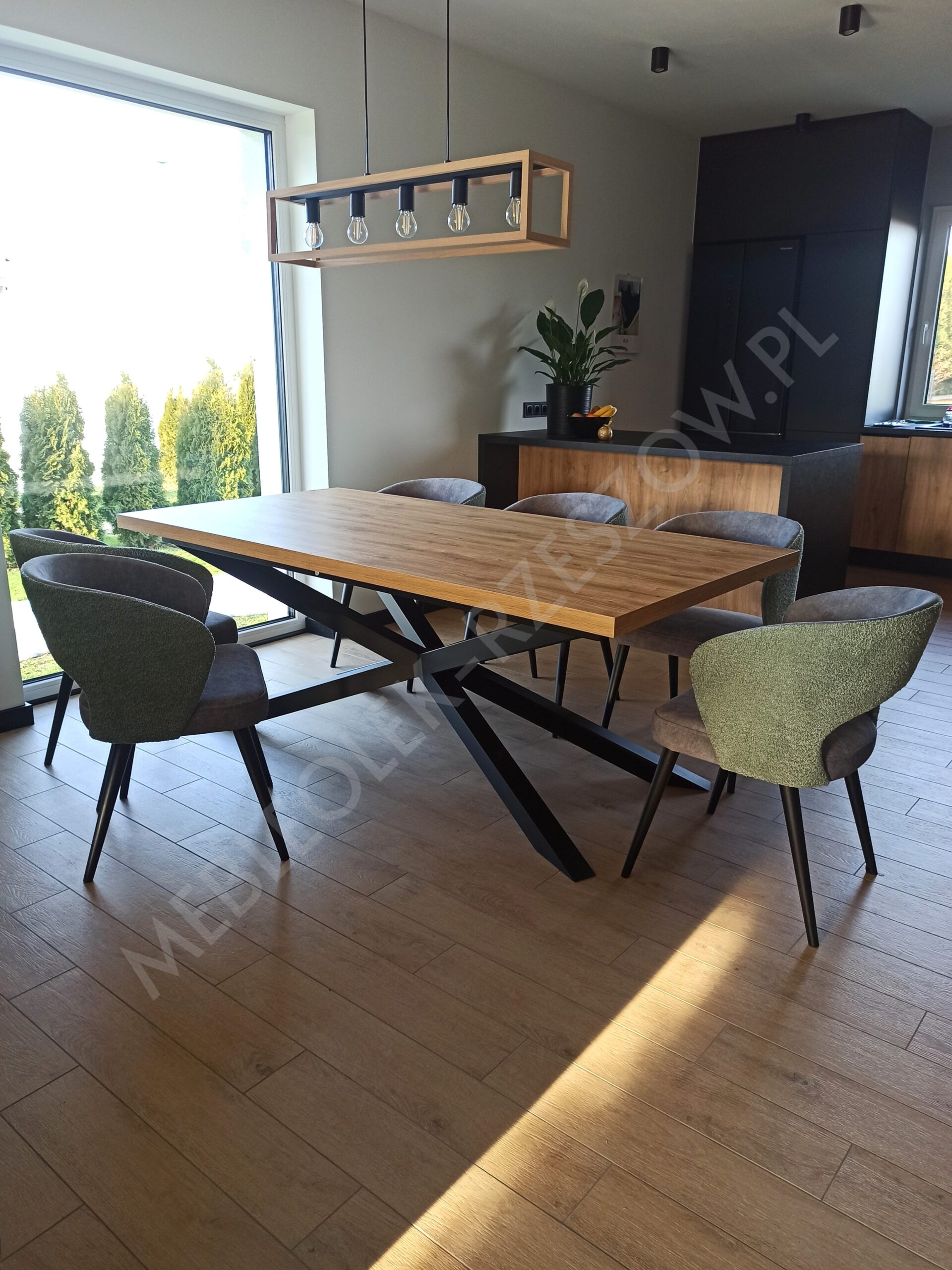 Stół Trapez to nowoczesny stół który wnosi surową elegancję stylu loft/industrial oraz ciepło naturalnego drewna.