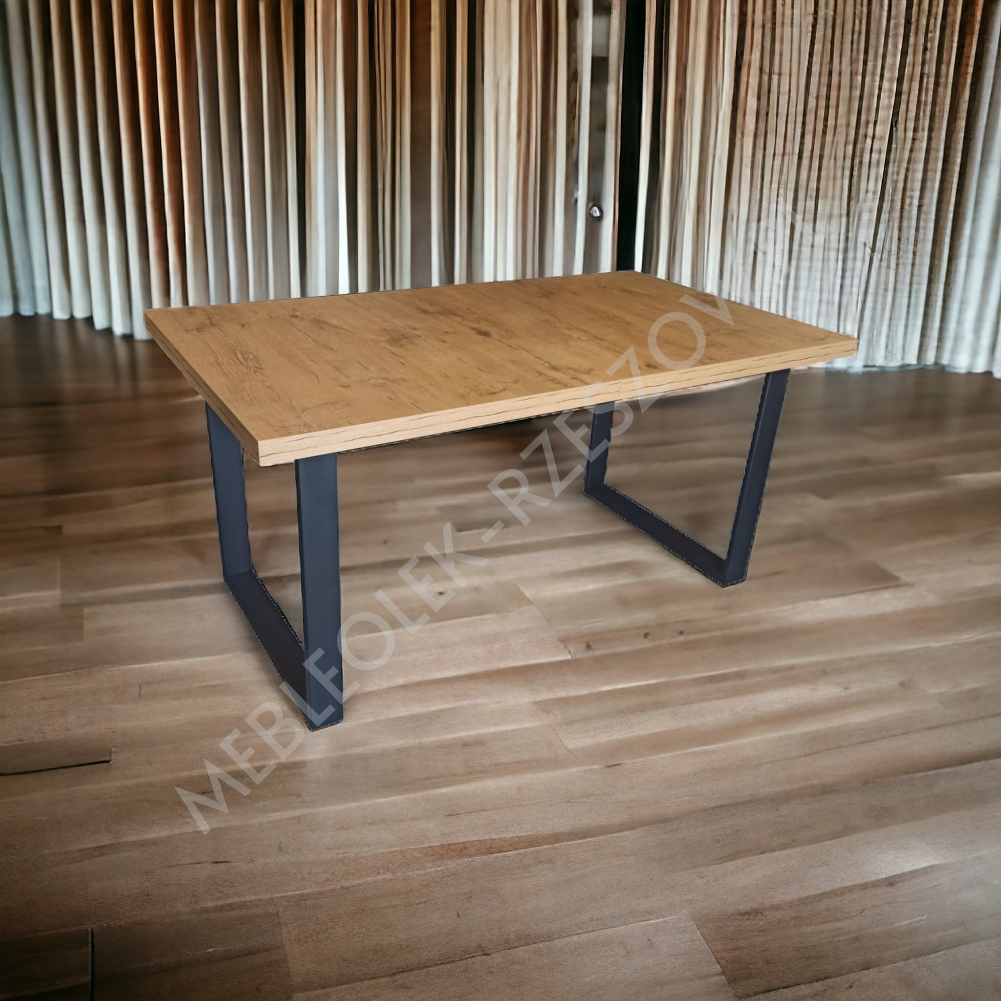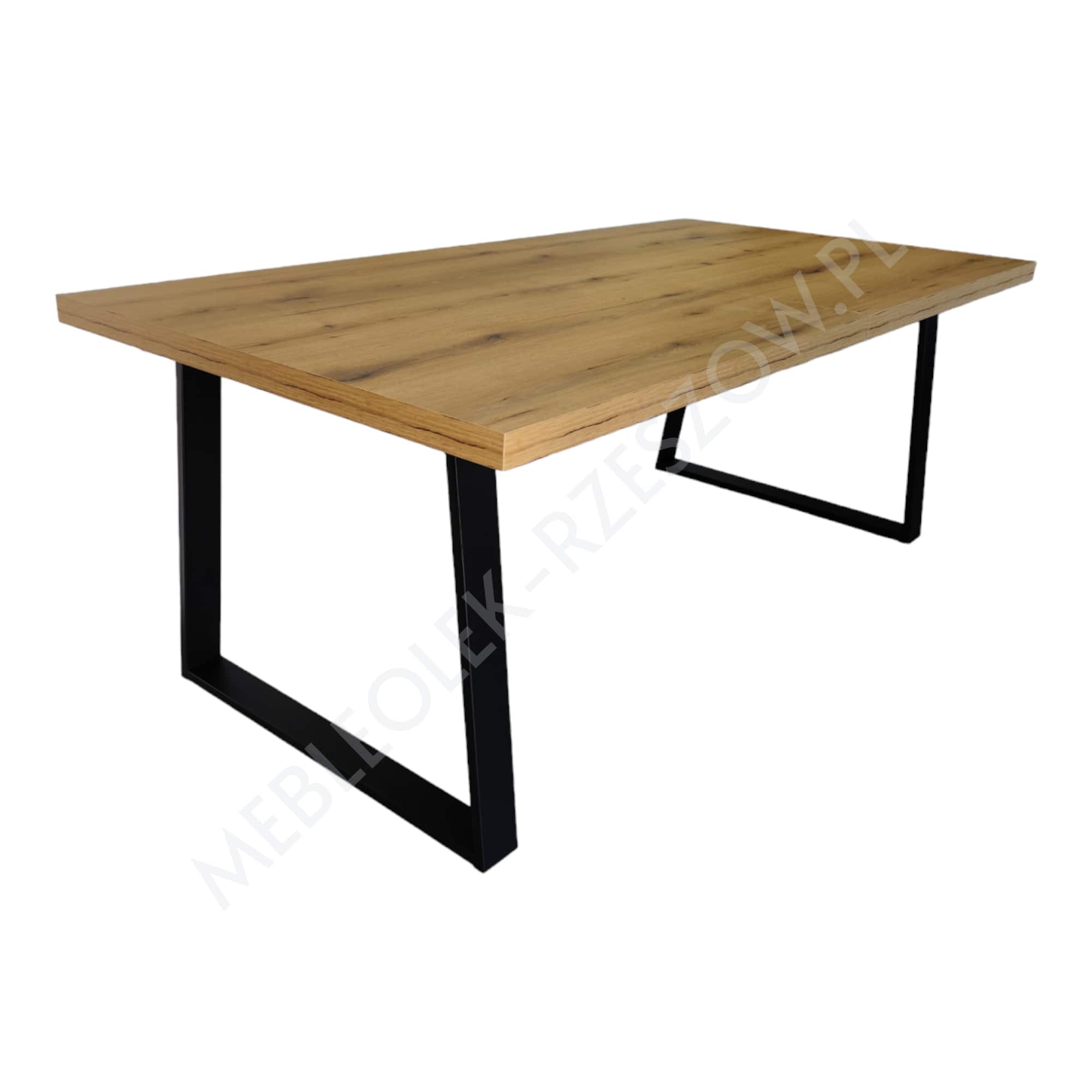 Stół loft to klasyczny stół który wnosi surową elegancję stylu loft/industrial oraz ciepło naturalnego drewna. Wykonany jest na malowanej proszkowo solidnej metalowej podstawie łączącej nogi w kształcie litery U. Blat stołu wykonany jest z łatwej w użytkowaniu płyty laminowanej wykończonej obrzeżem PCV/ABS na grubość 5cm.
